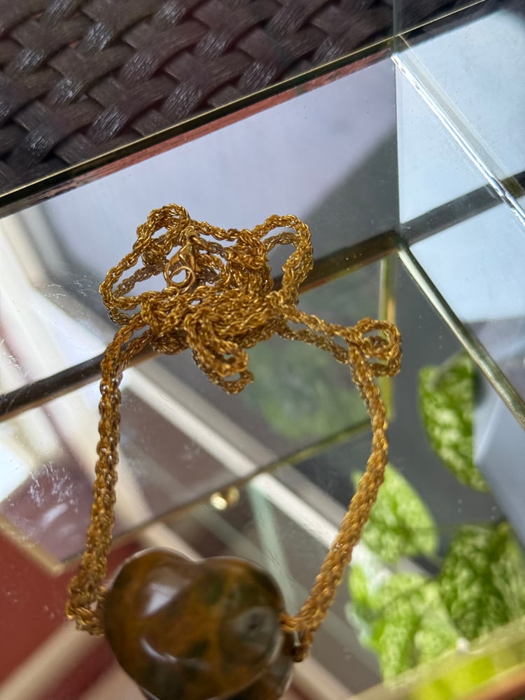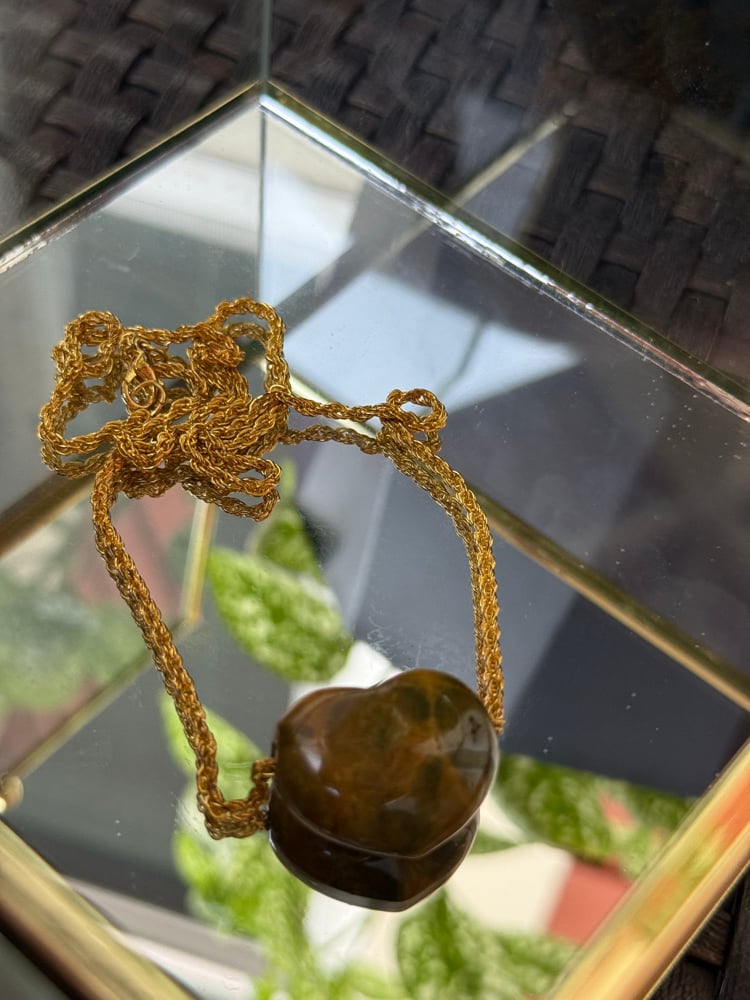 Light your heart and soul with this beautiful necklace. Believed to be tigers eye but it doesn’t have its shine. Chain is not long but very beautiful to wear as a tighter necklace🤎✨