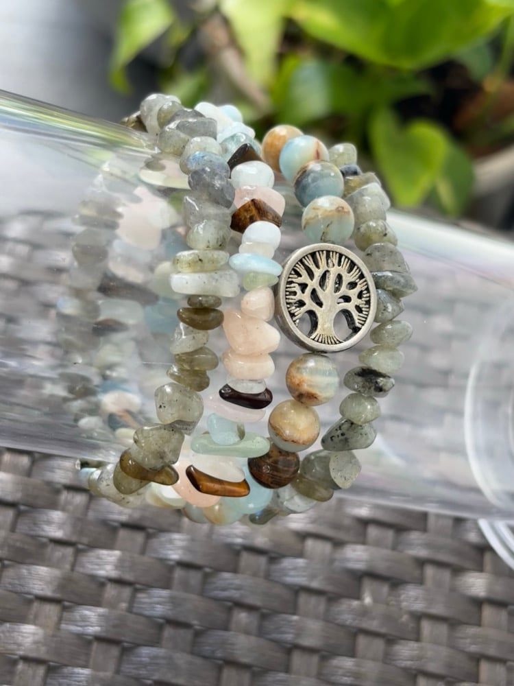 Let the energy of nature guide your spirit with the Roots of Harmony bracelet set. Featuring a grounding blend of labradorite, amazonite, rose quartz, tiger’s eye, and other earthy gems, this set is a tribute to inner balance and soul renewal.